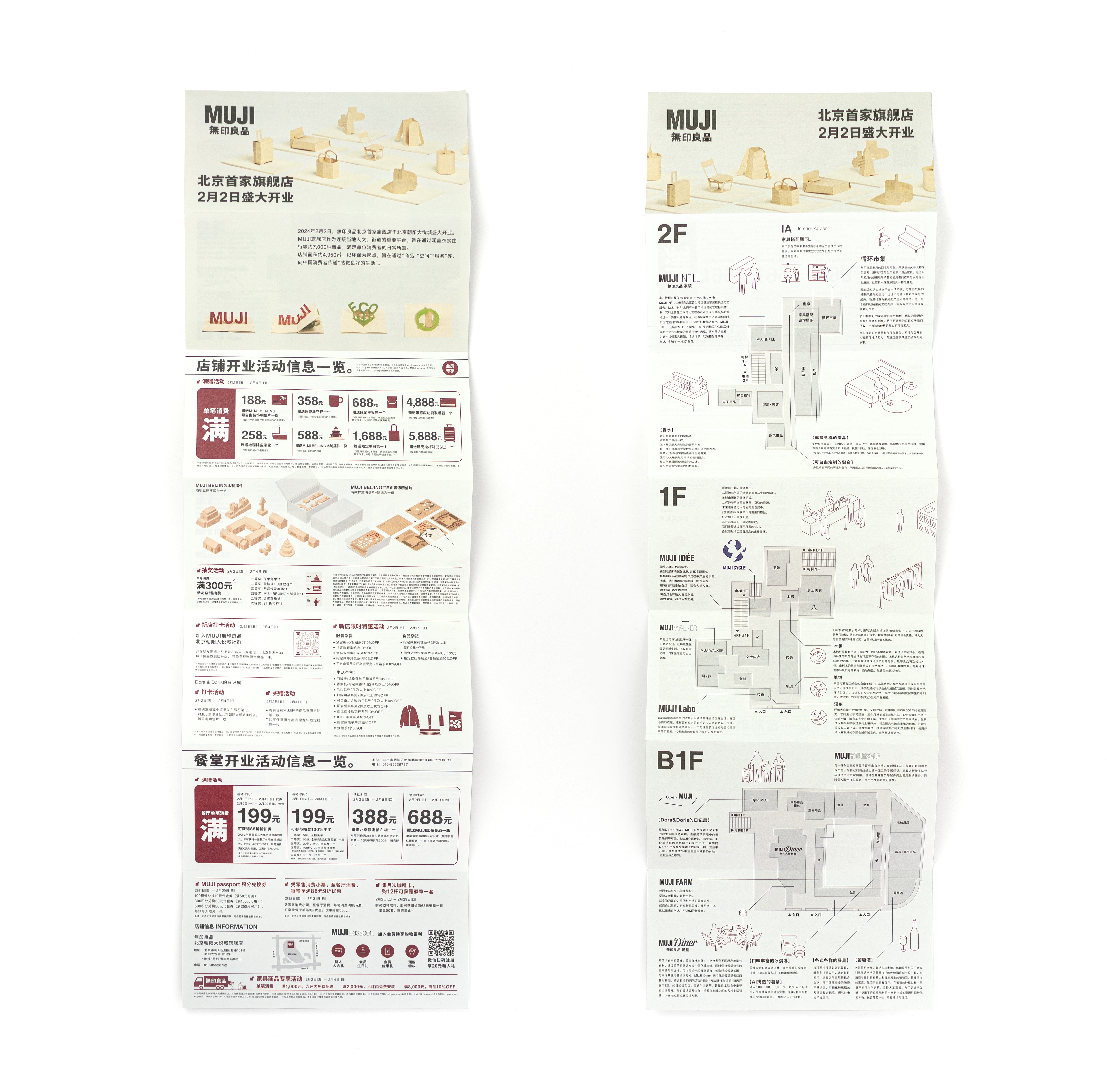 無印良品北京旗舰店开业视觉 ART DIRECTOR: Huang Tao DESIGNER: ENstudio / 3PD Team / LiaoDesign YEAR:2024 CLIENT:MUJI 北京旗舰店开业,「ECO」可持续环保发展的概念为此次开业的主题宣传;将MUJI对于ECO的理解并付诸于产品上的践行案例:如余线袜,海洋OBP再生素材产品,汗麻织物等等,以立体手工书的形式将这些案例产品展现并集结成册,成为新店开业的理念注脚,寓意未来在北京,良好的生活理念将一直续写下去。 项目导航上一页上一项目:POOL TOY下一页下一项目:MUJI BEIJING GIFT