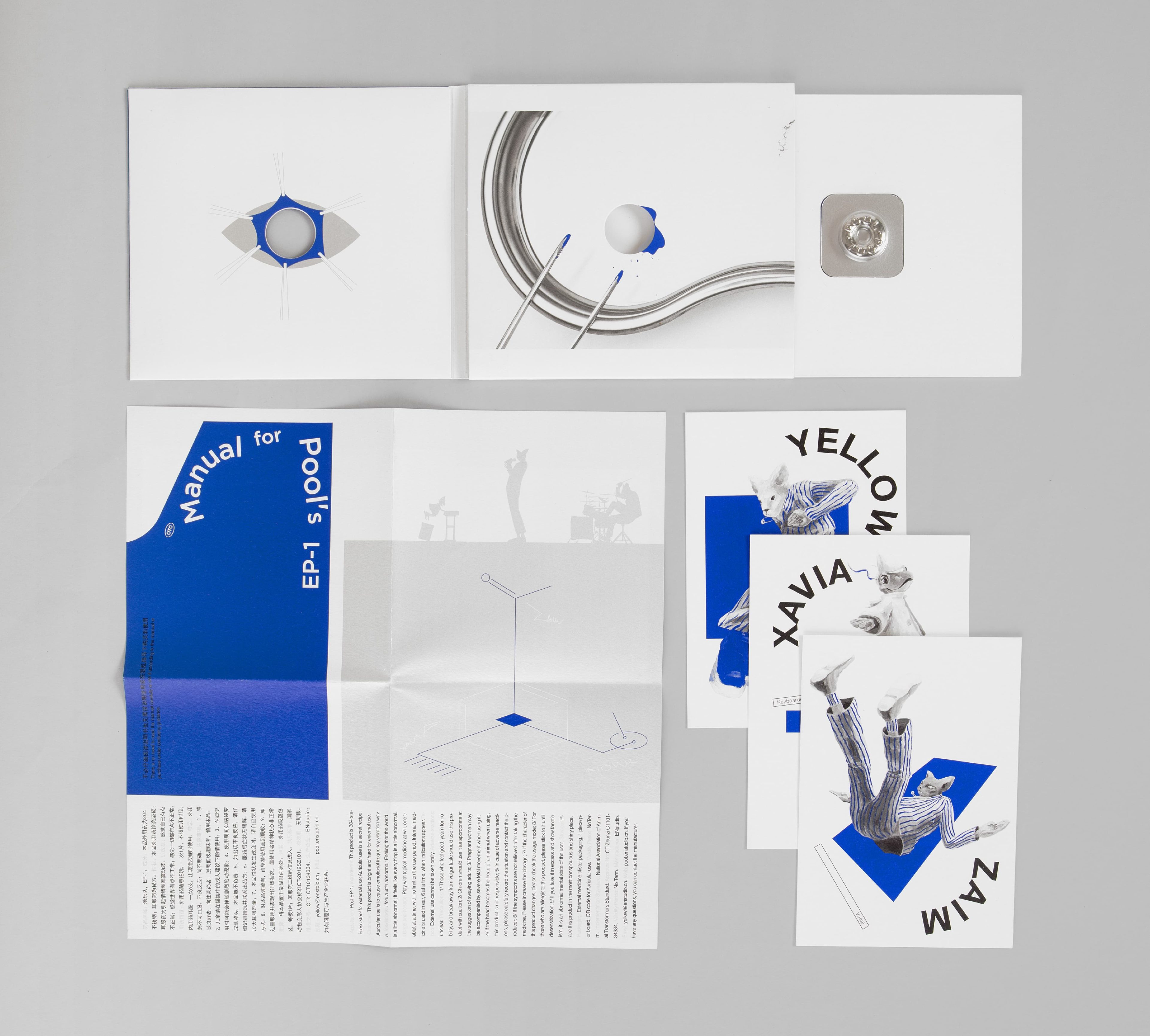 专辑主打单曲为《药》,所以整张专辑在模拟一片药品的封装形式,中间药片材料为不锈钢,药片原型是”POLO薄荷糖“,移动字母后使之成为乐队名称“POOL”——药与糖往往仅一线之隔。专辑音乐藏匿于药片底托上的二维码中,扫码进入EP专区(网络端),不仅有音乐,还有关于专辑的故事和漫画内容。所以这是一张没有CD碟片的音乐专辑,而通过一系列的操作,带给大家一个好玩而独特的音乐专辑体验。